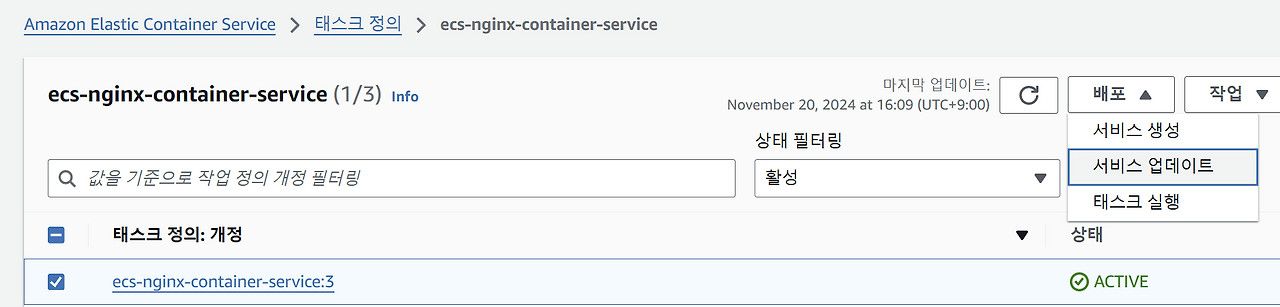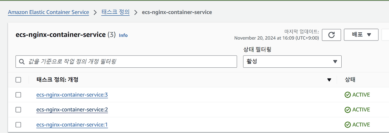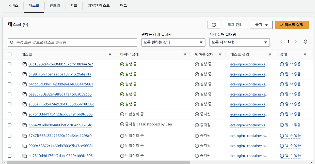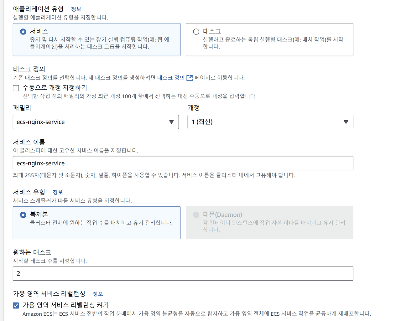 목차 1. 대상그룹 아래에 보류 중인 것으로 포함하지 않아도 컨테이너는 자동으로 포함됨 2. 로드밸런서 3. 태스크 정의 생성 4. 클러스터 서비스 생성 로드밸런싱 설정 서비스 자동 크기 조정(Auto scaling) 설정 로드밸런서 dns로 접속해도 웹이 뜨고 route53에 레코드 생성해서 로드밸런서로 연결해주면 도메인으로도 접속이 가능하다 롤링업데이트 기존의 것들 지워지면서 새로 생성됨 공유하기 게시글 관리 작업실 목차 목차 닫기